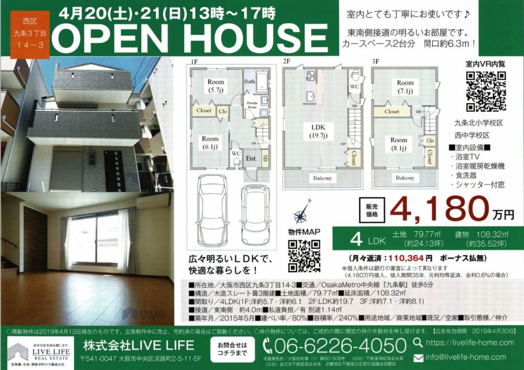 4月20日・21日は『九条3丁目 中古戸建』オープンハウス!【株式会社LIVELIFE(リブライフ)】